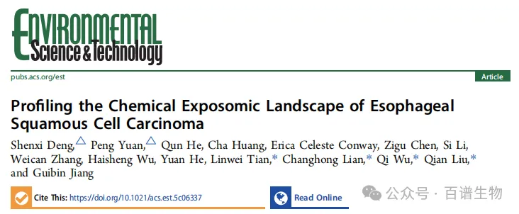 文章题目:Profiling the Chemical Exposomic Landscape of Esophageal Squamous Cell Carcinoma