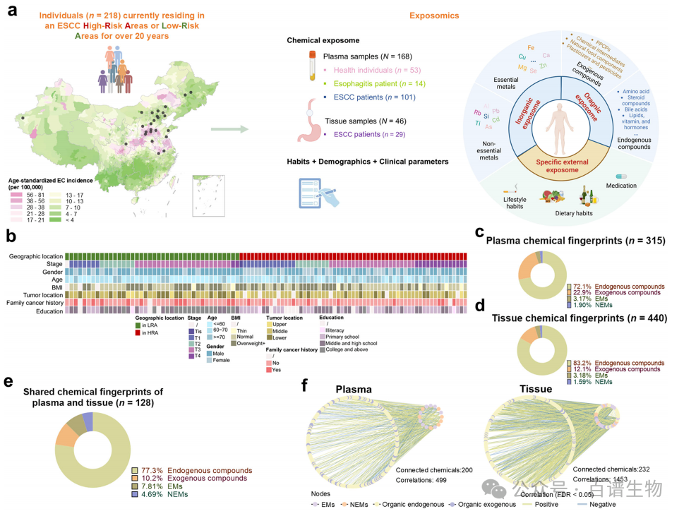 研究团队在全国12个省份(涵盖食管癌高风险区如太行山周边、低风险区)招募了238名参与者,包括健康人、食管炎患者和食管癌患者,收集了他们的血浆样本(168份)和食管组织样本(46份)。