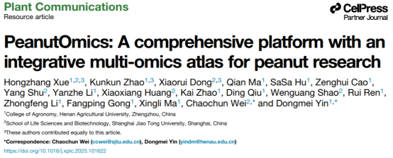 近日,河南农业大学殷冬梅教授团队与上海交通大学韦朝春教授团队携手合作,在Plant Communications期刊上发表了题为“PeanutOmics:A comprehensive platform with integrative multi-omics atlas for peanut research”的研究论文。