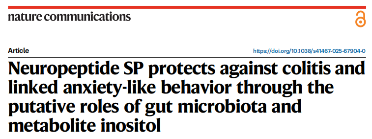 文章题目:Neuropeptide SP protects against colitis and linked anxiety-like behavior through the putative roles of gut microbiota and metabolite inositol
