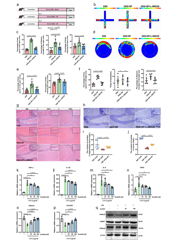 • 逆转SP的保护作用:L-690330处理后,SP对DSS小鼠的抗焦虑作用及海马体保护效应被显著逆转。