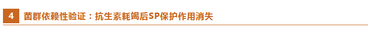 实验设计:采用“抗生素鸡尾酒”(氨苄西林+甲硝唑+万古霉素+新霉素+庆大霉素)处理14天,耗竭小鼠肠道菌群,验证肠道菌群是否为SP发挥作用的必需环节。