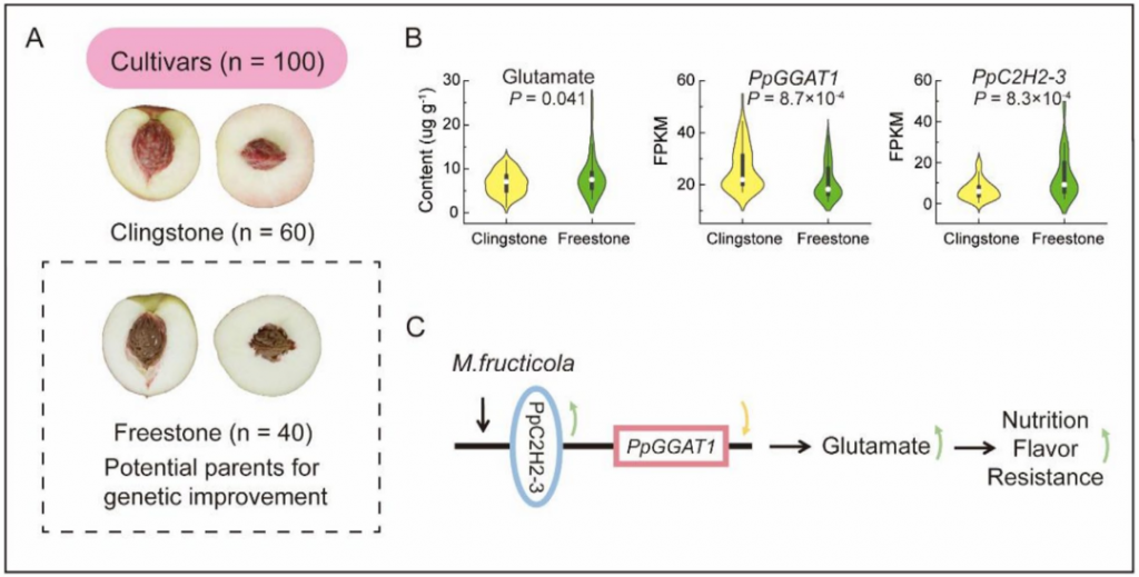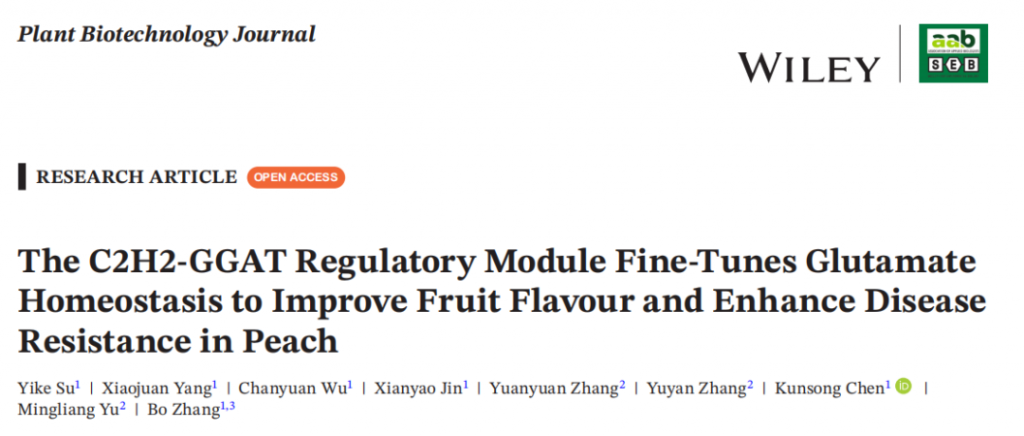 文章题目:The C2H2-GGAT Regulatory Module Fine-Tunes Glutamate Homeostasis to Improve Fruit Flavour and Enhance Disease Resistance in Peach