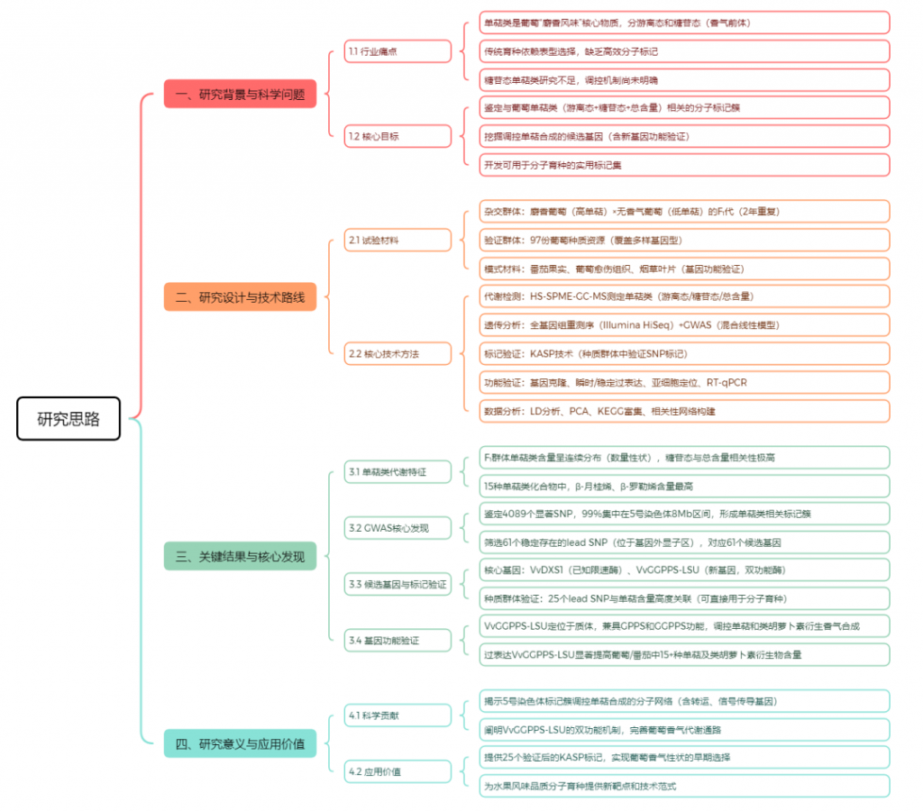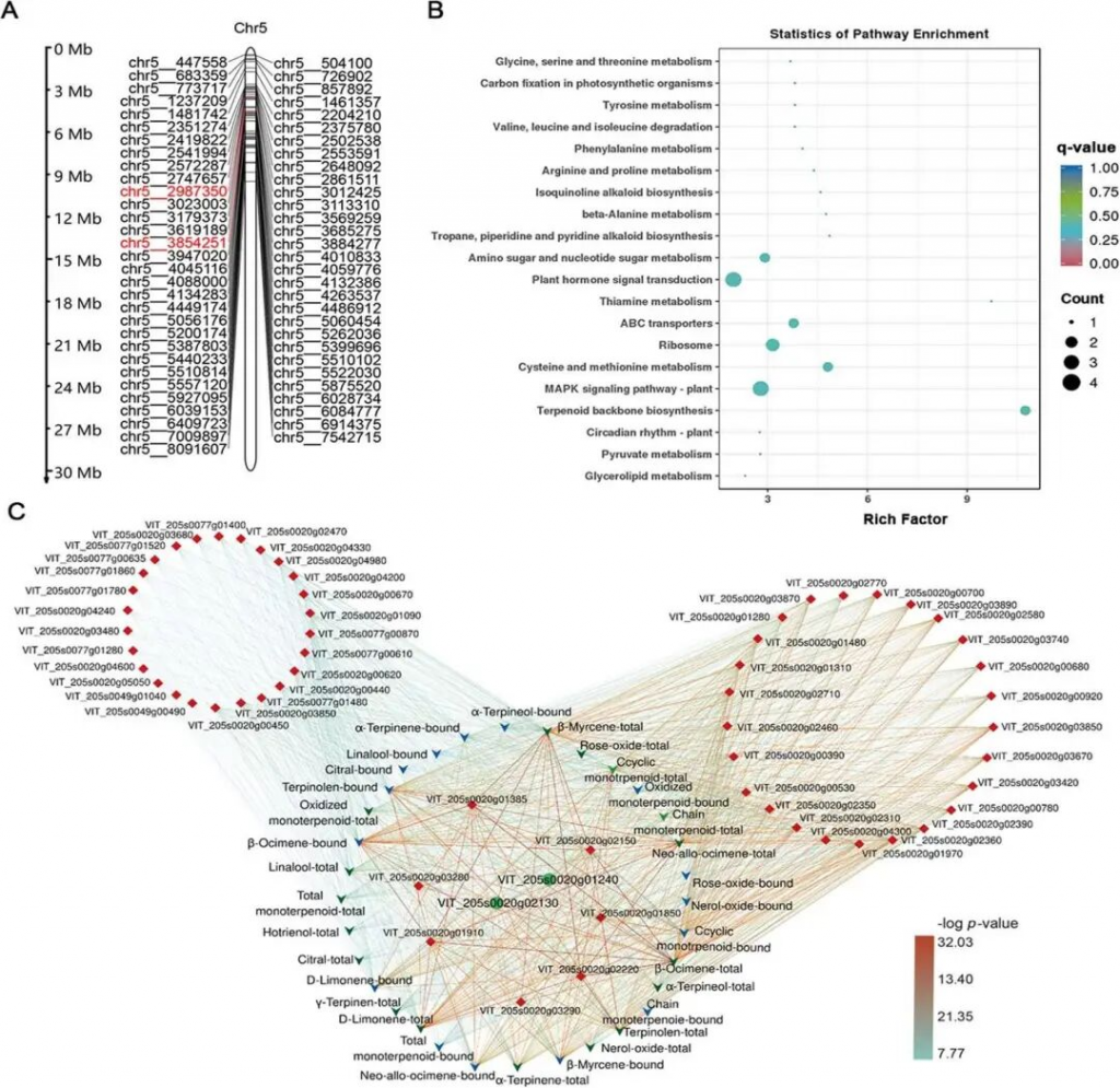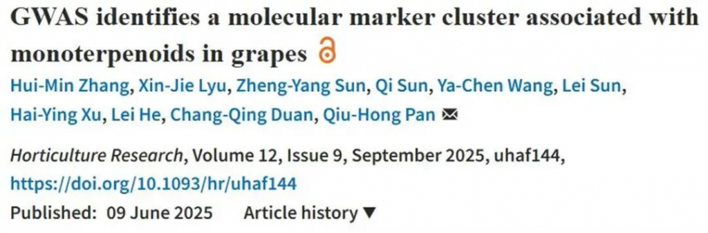 文章题目:GWAS identifies a molecular marker cluster associated with monoterpenoids in grapes