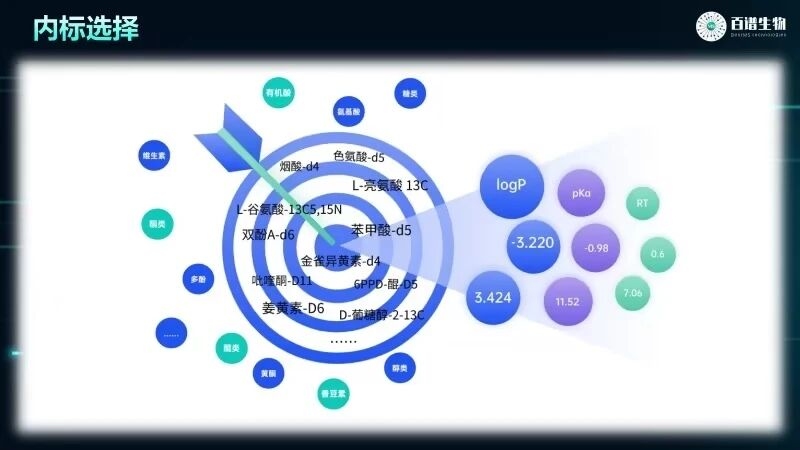 业内首次在植物广靶技术上加入同位素内标进行定量分析平台,拥有多种内标选择,能根据不同的检测需求和化合物特性,灵活挑选合适的内标,通过基质内标线性和自研算法校正,可以得到更为准确的定量结果。