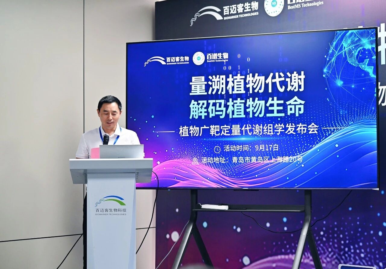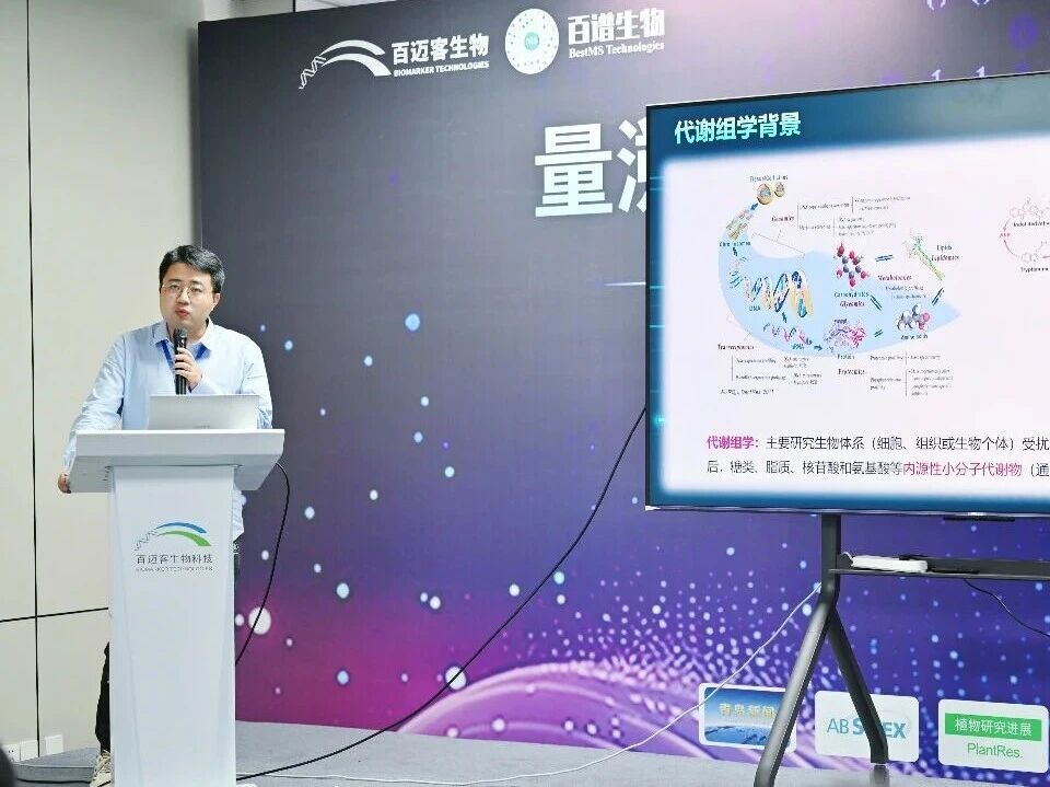 2025年9月17日,由百迈客生物与百谱生物联合主办的 “植物广靶定量代谢组学发布会” 在青岛隆重举行。中国科学院海洋研究所段德麟研究员、北京大学现代农业研究院王旭教授、中国科学院海洋研究所张立涛副研究员、SCIEX中国市场开发经理方晶晶受邀出席,会议同步开启线上直播,吸引超3000人次参与,引发行业广泛关注。本次发布会推出的植物广靶定量代谢组学产品,成功突破非模式植物研究瓶颈,为植物基础研究与农业产业升级注入全新动能。