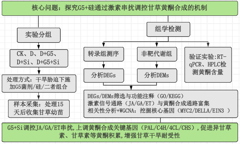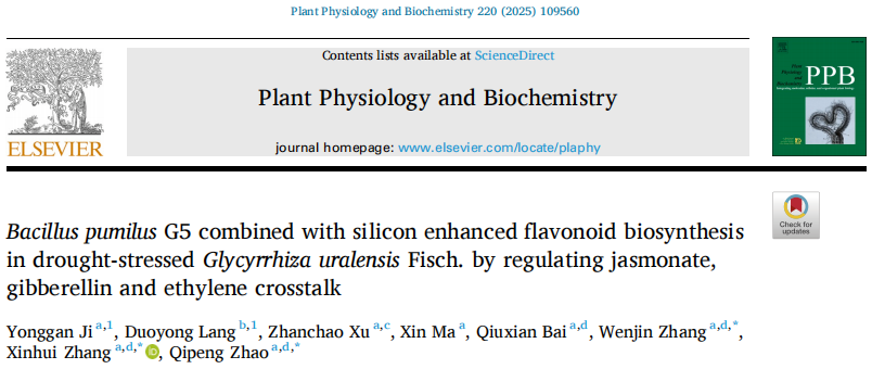 短小芽孢杆菌G5联合硅通过调节茉莉酸盐、赤霉素和乙烯串扰增强干旱胁迫甘草黄酮生物合成