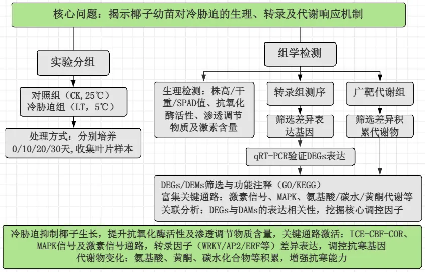 综合转录组学和广靶代谢组学分析揭示了椰子幼苗对冷应激的分子反应