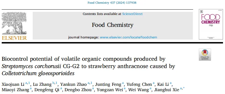 胶孢炭疽菌引起的草莓炭疽病对胶孢炭疽链霉菌CG-G2产生的挥发性有机化合物的生物防治潜力