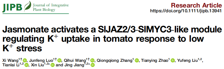 茉莉酸通过激活SIJAZ2/3-SIMYC3-like模块调控番茄在低钾胁迫下的钾离子吸收