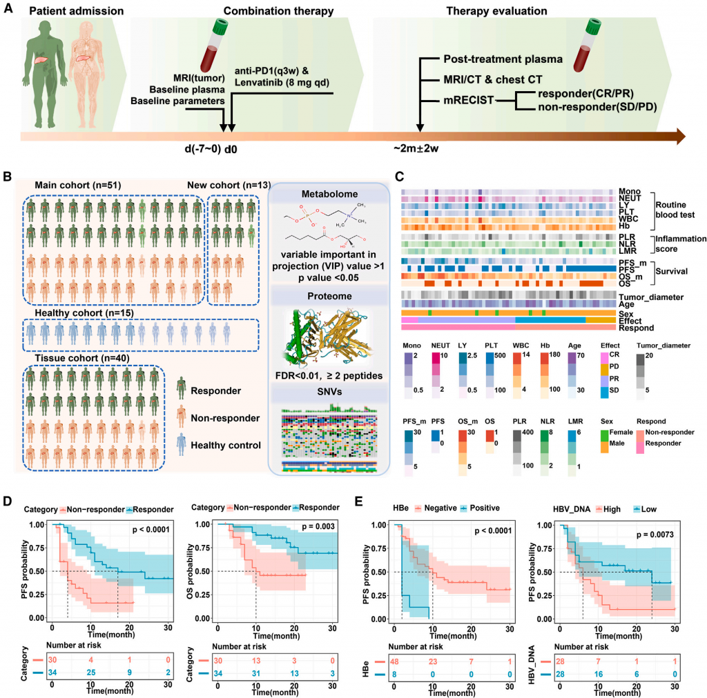 图1 接受抗PD1联合仑伐替尼治疗的HCC患者血浆蛋白质组与代谢组的分子特征分析